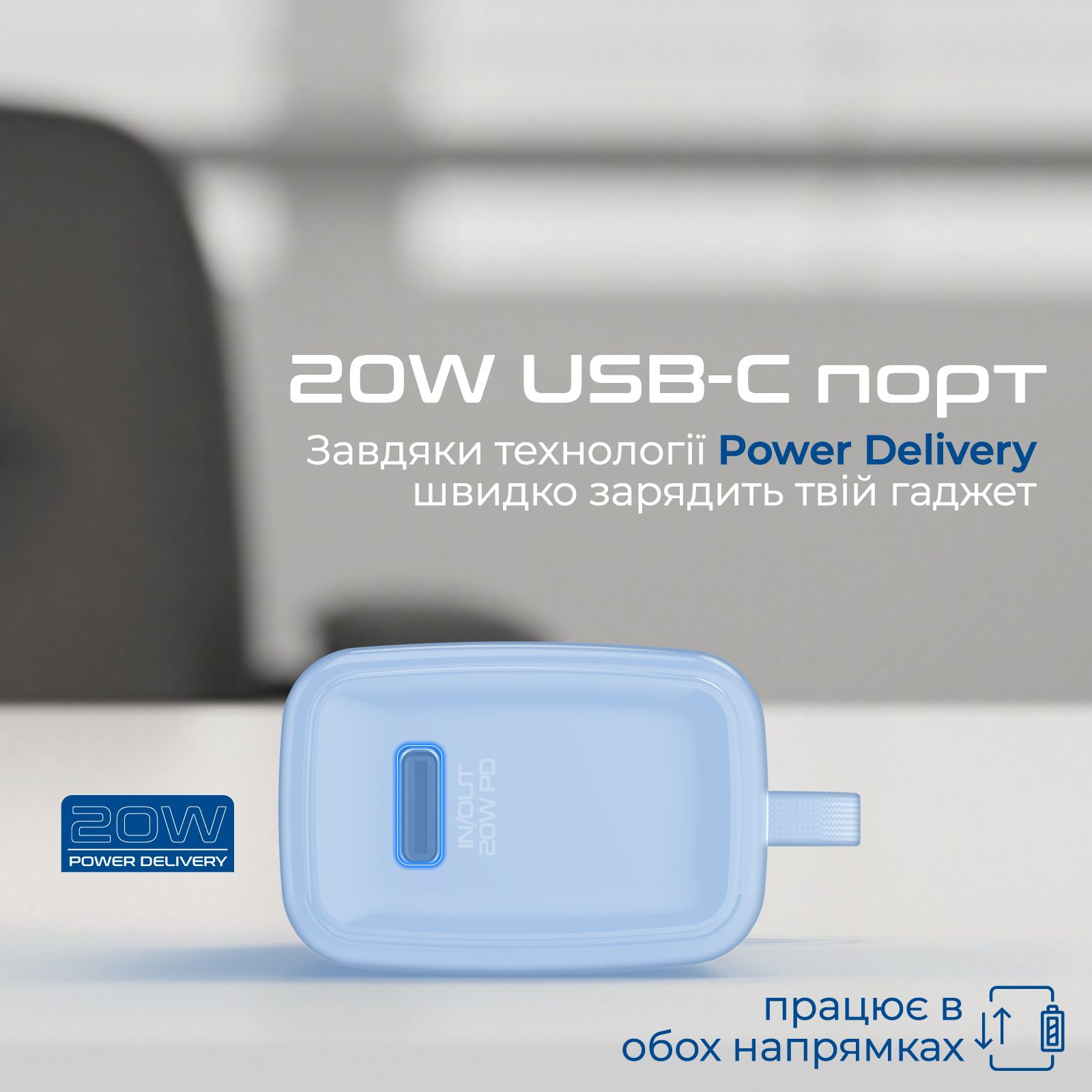- 20 Вт двосторонній USB-C порт: З підтримкою технології Power Delivery, швидко зарядить твій гаджет або сам повербанк
