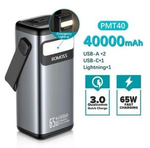 Romoss PMT40 65W 40000mAh Power Bank – ваш ідеальний супутник для підзарядки пристроїв у будь-яких умовах. Цей потужний та ємний портативний акумулятор створений для тих, хто цінує надійність та продуктивність.