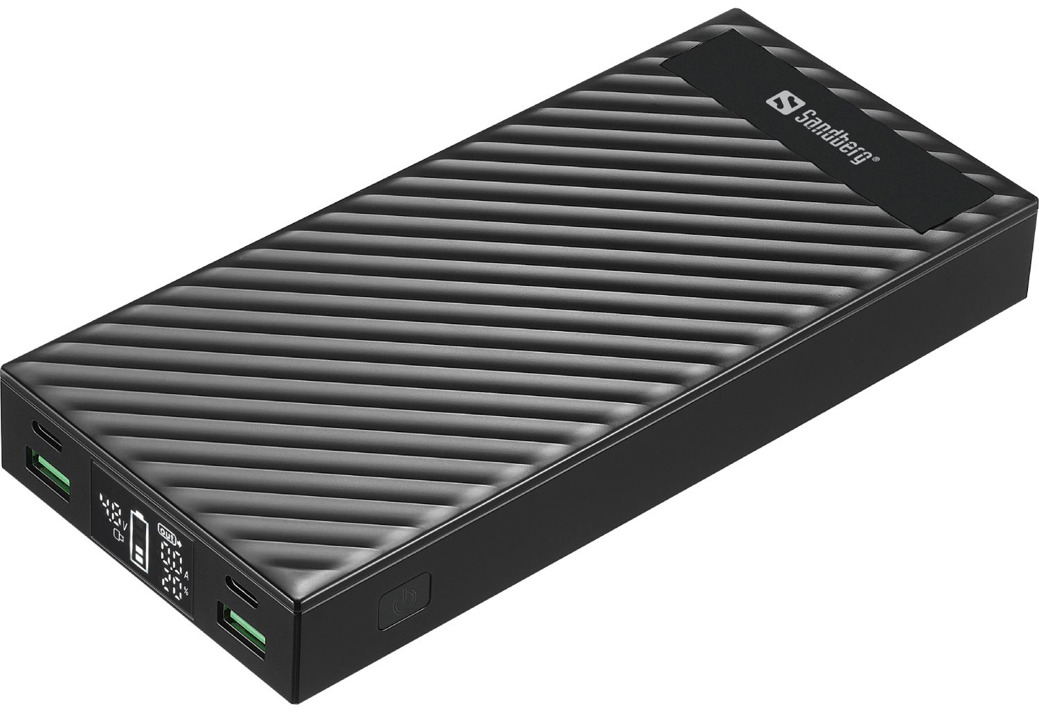 Повербанк Sandberg дуже потужний і може одночасно заряджати 2 великі ноутбуки. Його два порти USB-C PD потужністю 100 Вт кожен забезпечують оптимальний об’єм енергії в дорозі або може служити резервним джерелом живлення при відключенні електроенергії. Крім того, є два порти QC 3.0 USB-A, кожен потужністю 18 Вт.