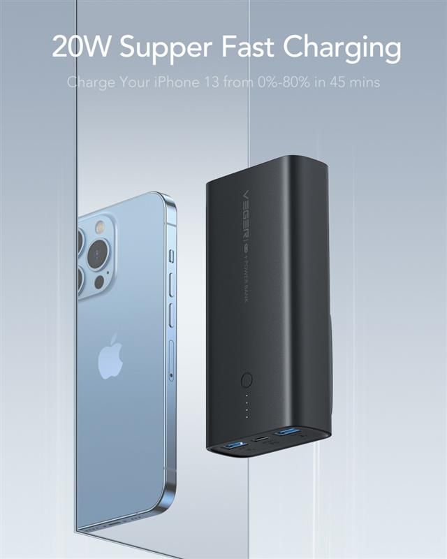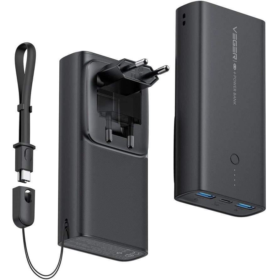 Зовнішній акумулятор VEGER ACE100 Built-in EU Plug Power Bank PD 20W (10000mAh) – незвичайний, на перший погляд, повербанк, який має виделку європейського стандарту. Однак він виконує стандартний функціонал і полегшує заповнення свого заряду, пропонуючи користувачеві зарядити його прямо від розетки, не використовуючи кабель. Пристрій зможе зарядити смартфон, планшет чи бездротові навушники. На додаток йде кабель, який кріпиться на корпусі за допомогою шнурка.