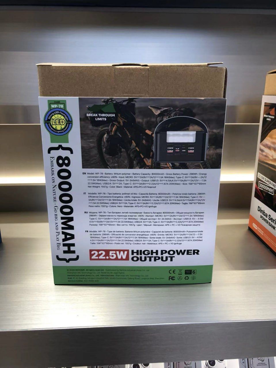 Портативний акумулятор WEKOME wp-78 80000mAh Power Bank 22.5W з швидким зарядним пристроєм