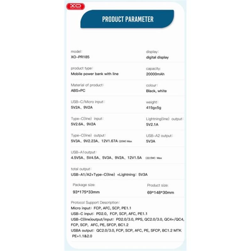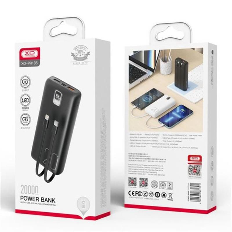 Особливості: Павербанк 20000mAh із кабелями та швидкою зарядкою XO PR185 PD20W+QC22.5W