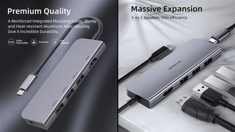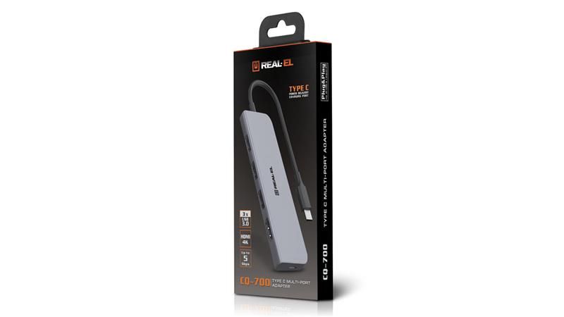 Багатопортовий адаптер REAL-EL CQ-700 Type C призначений для використання з усіма пристроями, що мають можливість підключення за допомогою порту Type C та підтримують усі необхідні протоколи передачі даних.