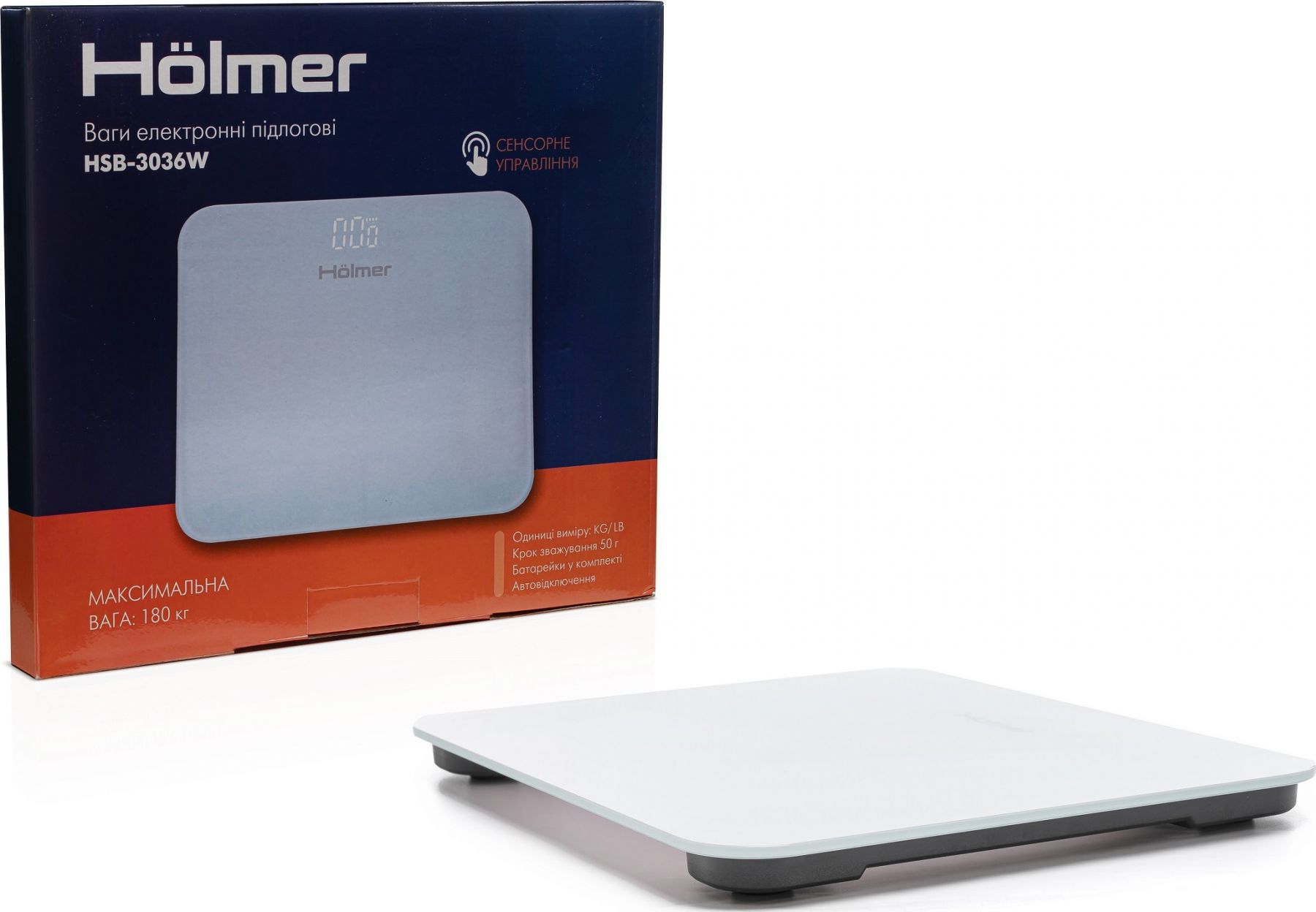 Ваги електронні підлогові Holmer HSB-3036W - це елегантний та функціональний пристрій для вашого дому. Виготовлені зі скла та представлені у білому кольорі, ці ваги поєднують стильний дизайн з високою точністю зважування. Вони мають крок зважування у 50 грамів, що дозволяє зчитувати навіть незначні зміни ваги. Максимальне навантаження ваг становить 180 кг, що робить їх придатними для використання всією сім’єю.