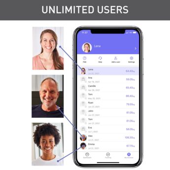 Зручний застосунок дає змогу відстежувати та візуалізувати ваш прогрес, а також встановлювати цільові значення ваги та жирових відкладень, щоб допомогти вам досягти бажаних позитивних результатів. Без обмежень за кількістю користувачів, він ідеально підходить для підтримки форми і здоров’я всієї родини і ваших друзів.