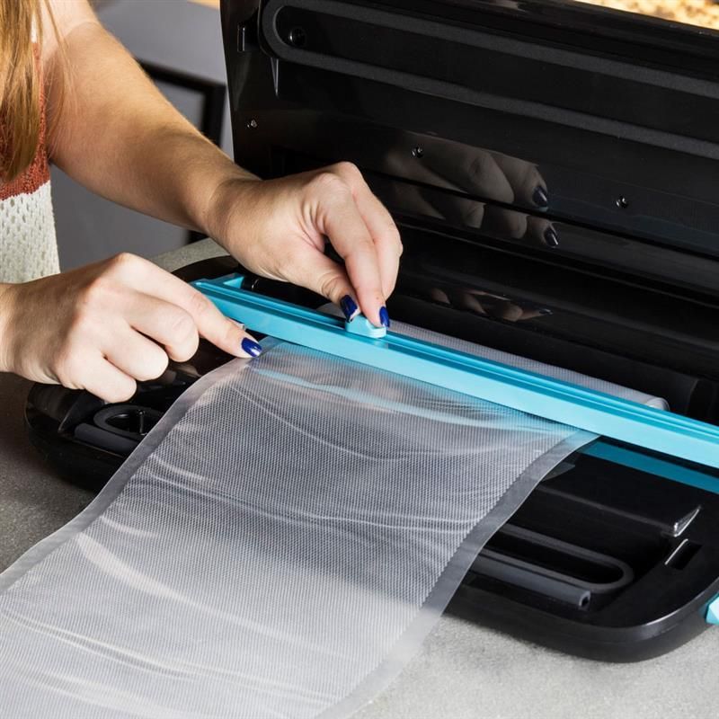 Вакуумування не займе багато часу, адже вам не потрібно розрізати пакети вручну. Це зробить за вас вбудований ніж. У комплект також входить рулон із харчового поліетилену, який ви можете розділити на потрібні вам пакети.