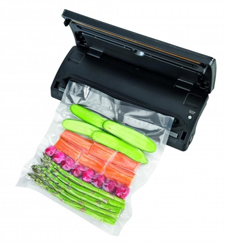 Пристрій дозволяє упаковувати сухі і вологі продукти. Це дуже зручно для вакуумування продуктів в маринаді з подальшим приготуванням методом Сувид.
