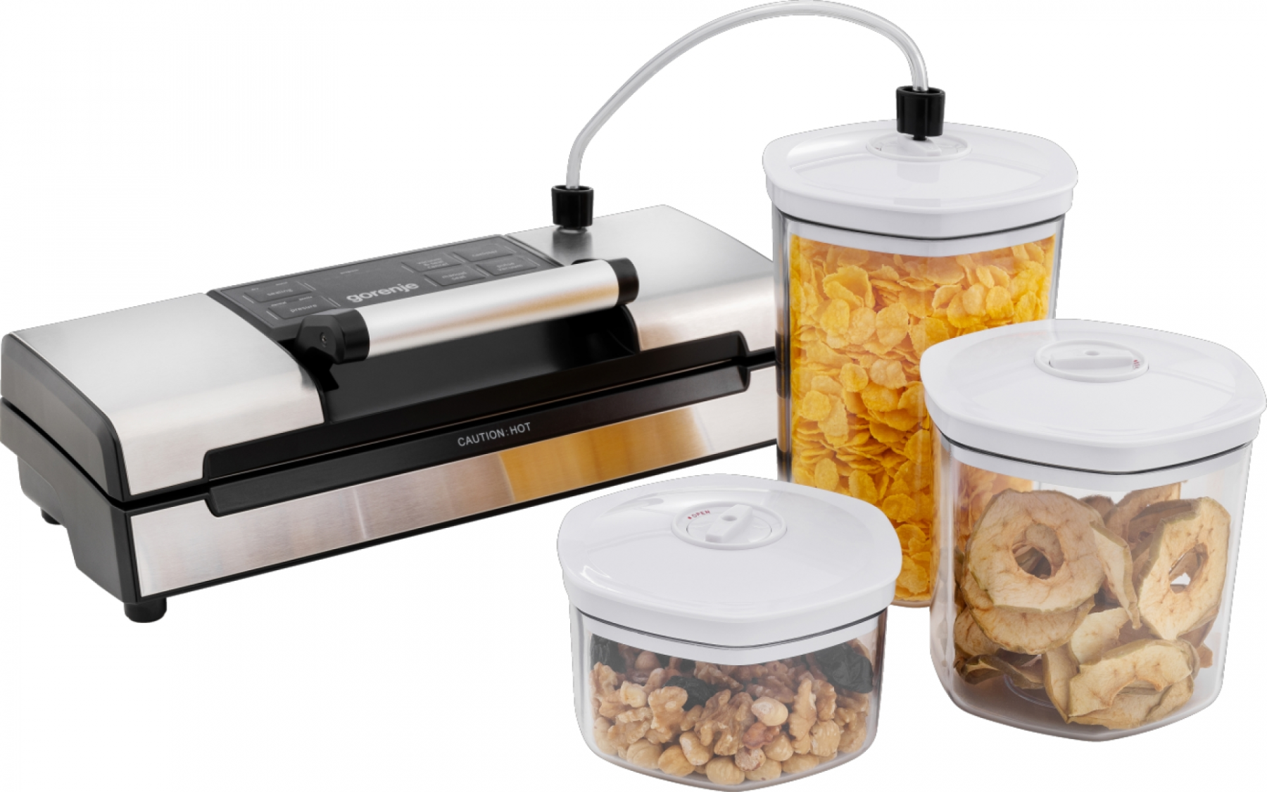 Вакуумний пакувальник від Gorenje - корисний, і красивий помічник на кухні, іще і легкий в експлуатації. Він стане у пригоді для зберігання різноманітних продуктів - від готових страв до зберігання м’яса і риби, які при такому способі упаковки не виділяють запахів.