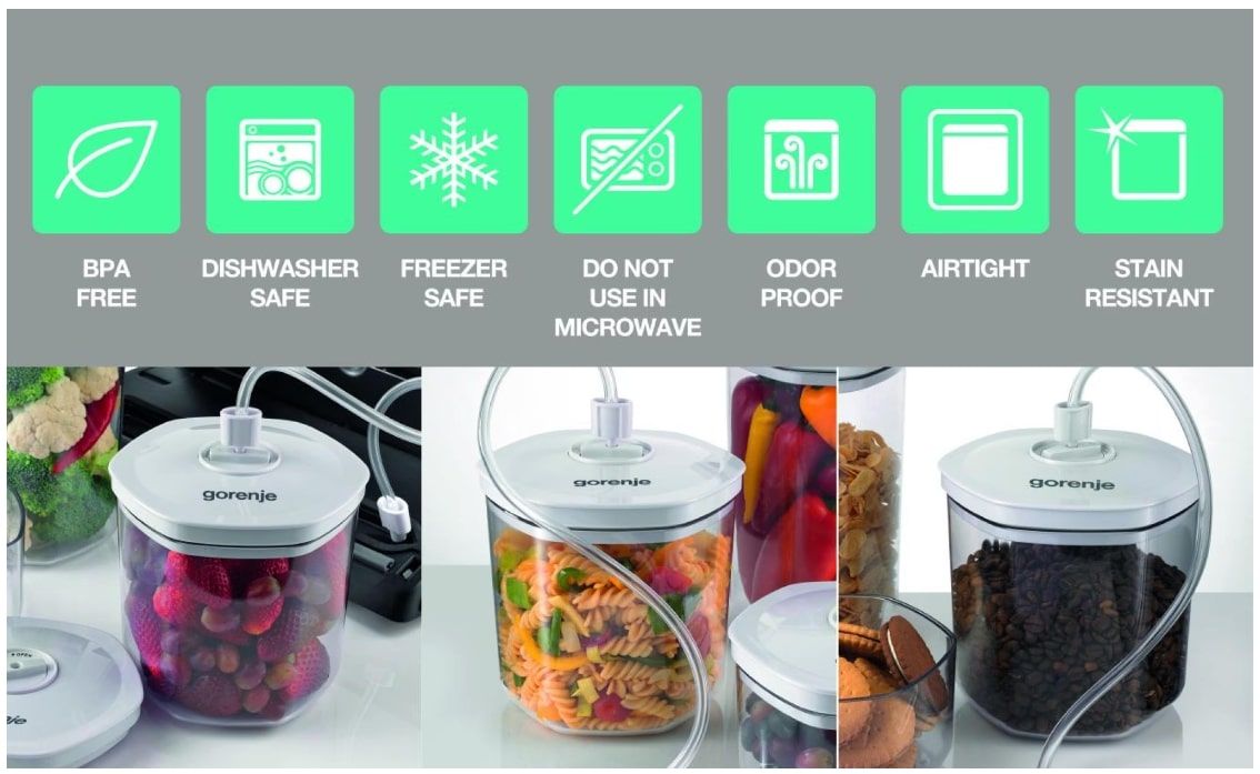 Відмінний спосіб зберігання харчових продуктів. Вакуумний пакувальник від Gorenje - корисний, і красивий помічник на кухні, іще і легкий у експлуатації. Він стане у нагоді для зберігання різноманітних продуктів - від готових страв до зберігання м’яса і риби, які при такому способі упаковки не виділяють запахів.