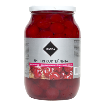 Вишня Rioba коктейльна в сиропі пастеризована 1170г