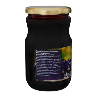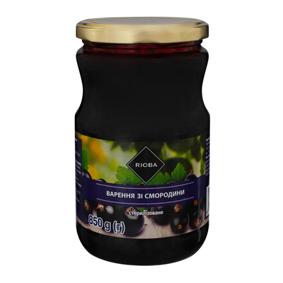 Варення Rioba зі смородини стерилізоване 850г. Склад: цукор, смородина - 40%. Поживна (харчова) цінність на 100г продукту: білки - 0.4г, жири - 0.16г, вуглеводи - 67г. Енергетична цінність на 100г продукту: 1131кДж/270ккал. Умови зберігання: при температурі від 0°С до +25°C та відносній вологості повітря не більше 75%. Строк придатності: 4 роки. Країна виробник: Україна. Маса нетто: 850г.