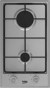 Beko HDCG32220FX - цікава модель газової варильної поверхні від компанії Beko. Корпус поверхні виготовлений з нержавіючої сталі. Звичайно, такий корпус приємний зовні і завжди красиво виглядає на кухні у поєднанні з іншою кухонною технікою. Проте для хазяйки головнішим буде те, що такий корпус легше чистити і відмивати після великих свят. Ця модель розрахована тільки на дві газові конфорки, і відповідно має значно менші габарити. Але не переживайте, обидві конфорки досить потужні (одна на 1000 Вт, друга на 2900 Вт). На таких стандартних конфорках ви зможете приготувати усі основні блюда, зате розмістити таку поверхню ви зможете навіть в найменшій кухні. Розміри плити - ширина 30 см, глибина 51 см. І незважаючи на скромні розміри, обидві конфорки оснащені системою автоматичного электроподжига. Тобто, вам досить повернути ручку, і газ запалиться сам, і немає необхідності постійно купувати сірники.