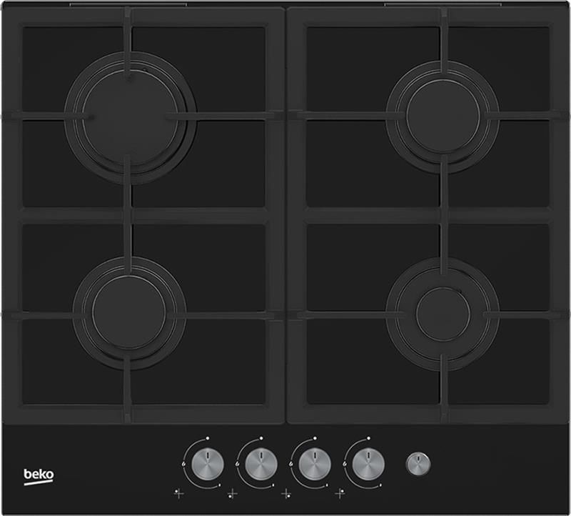 Варильна поверхня газова BEKO HILG 64235 S має поверхню зі скла чорного кольору і чавунні решітки, за якими легко доглядати.