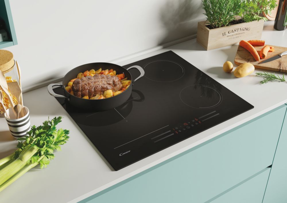 Індукційна плита Candy Moderna пропонує інтуїтивно зрозуміле та гнучке управління, яке дає змогу використовувати навіть великі сковорідки та каструлі і, таким чином, одночасно готувати кілька страв.
