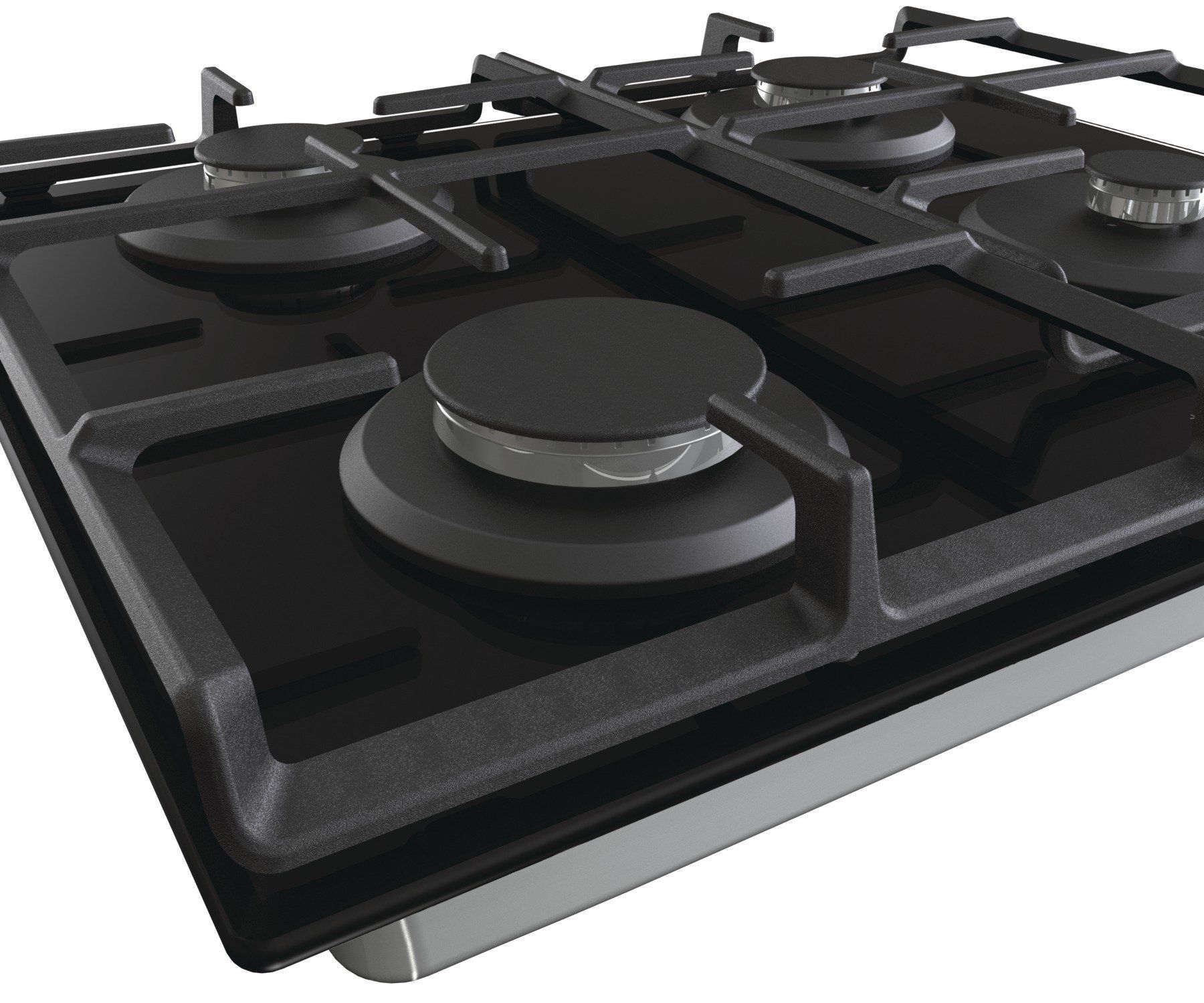 На просторій варильній поверхні зі збільшеною відстанню між пальниками помістяться каструлі та сковороди будь-яких розмірів. Завдяки ергономічному плоскому дизайну ви можете легко переміщати по поверхні навіть дуже об'ємні каструлі і при цьому не побоюватися за їх стійкість під час готування.