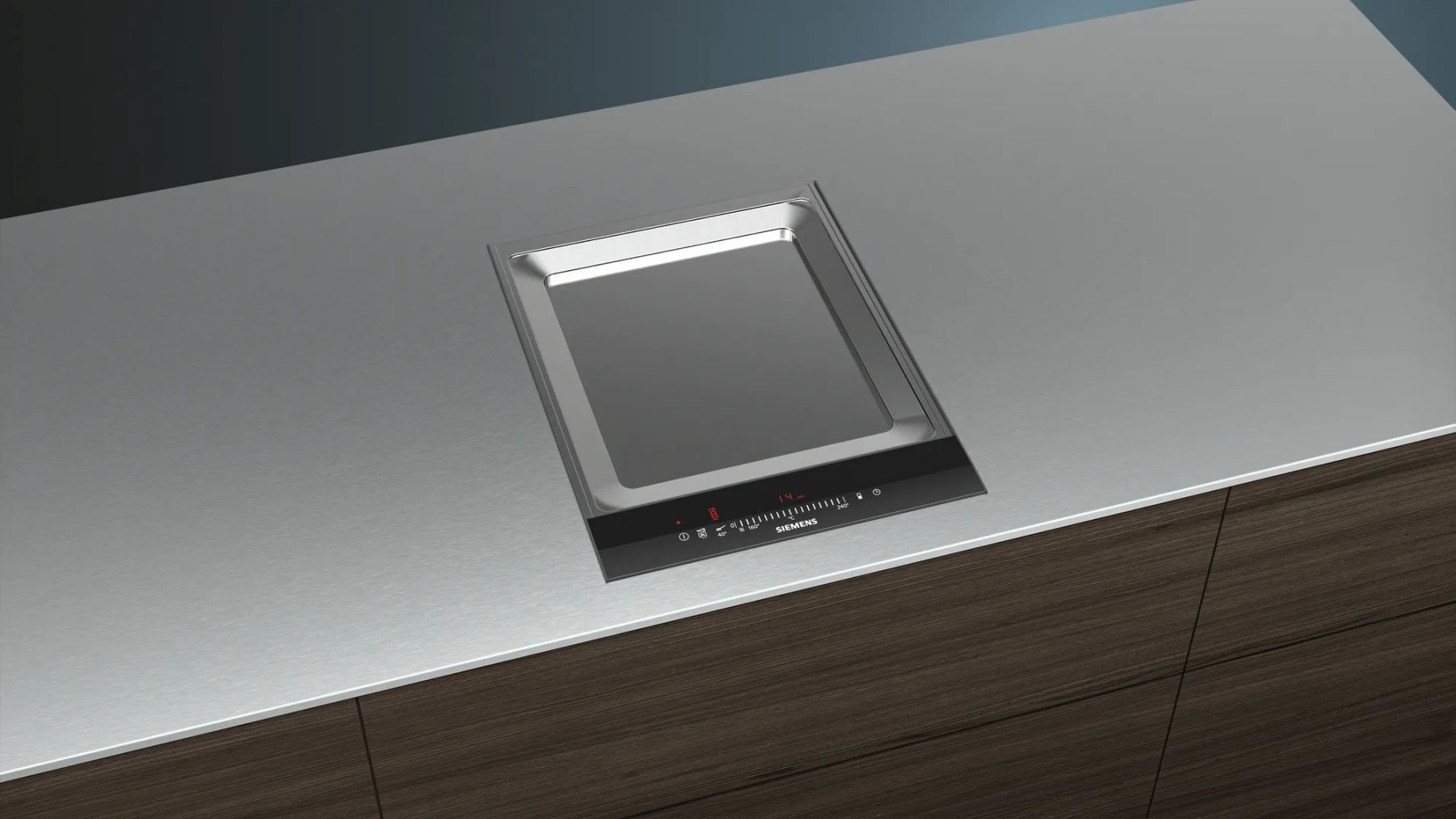 Електрична варильна поверхня Siemens ET 475FYB1E - це специфічне кухонне обладнання. Прилад являє собою пластину прямокутної форми з нержавіючої сталі, яка ще відома як поверхня тепан-яки. Така поверхня традиційно використовується в японській та інших східних кухнях для приготування страв з низьким вмістом жиру. Модель укомплектована знімною кришкою зі склокераміки чорного кольору.
