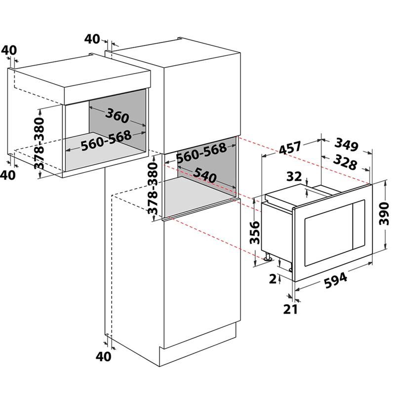 Габарити ніші для вбудовування:560 х 378 х 360 мм