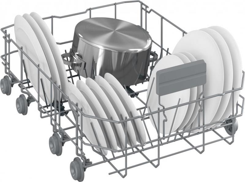 Спеціальний дизайн кошиків виконаний для оптимального розміщення посуду і легко трансформується відповідно до ваших потреб. Завдяки цьому в посудомийній машинці можна розмістити до 15 комплектів посуду Середній кошик легко регулюється за висотою та має три положення фіксації. Така конструкція дає можливість розмістити до 15 комплектів посуду, і великі тарілки діаметром до 31 см у нижньому кошику.