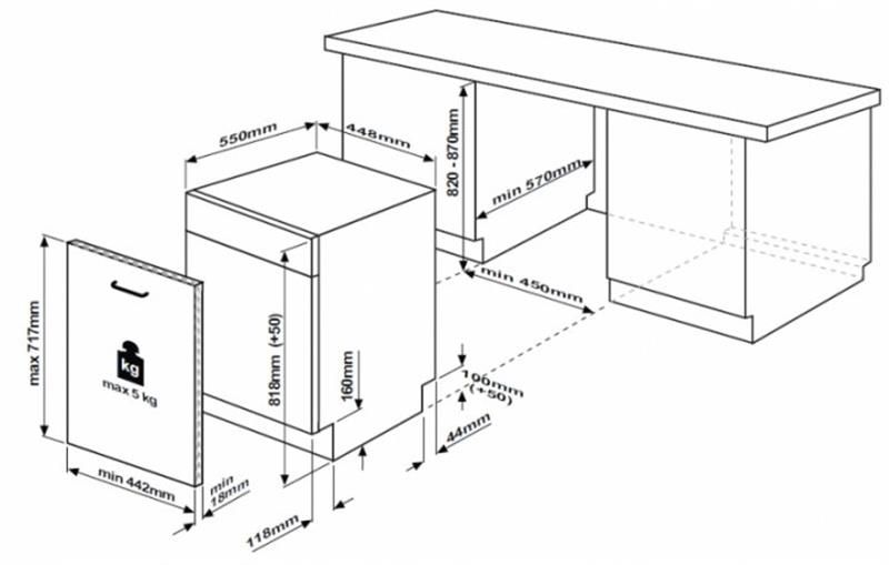 Габарити вбудовування (ШхВхГ):45 х 82-87 х 57 см