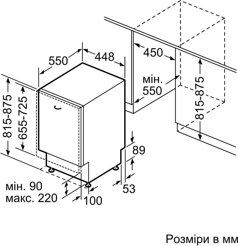 Габарити вбудовування (ШхВхГ):45 х 81.5-87.5 х 55 см