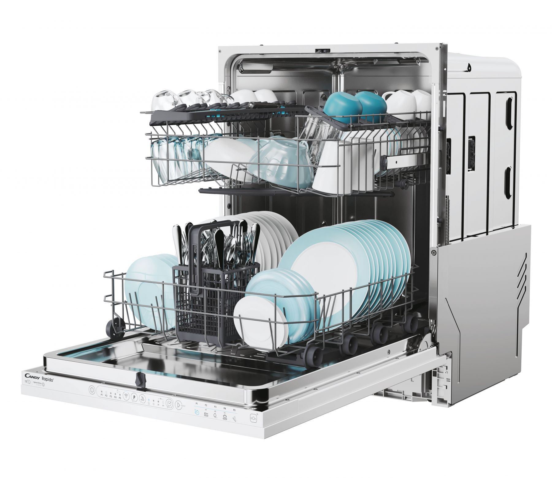 Candy Rapidò - найшвидша та наймісткіша посудомийна машина. Вона оснащена набором швидких циклів для будь-яких потреб, спрощуючи щоденне використання.