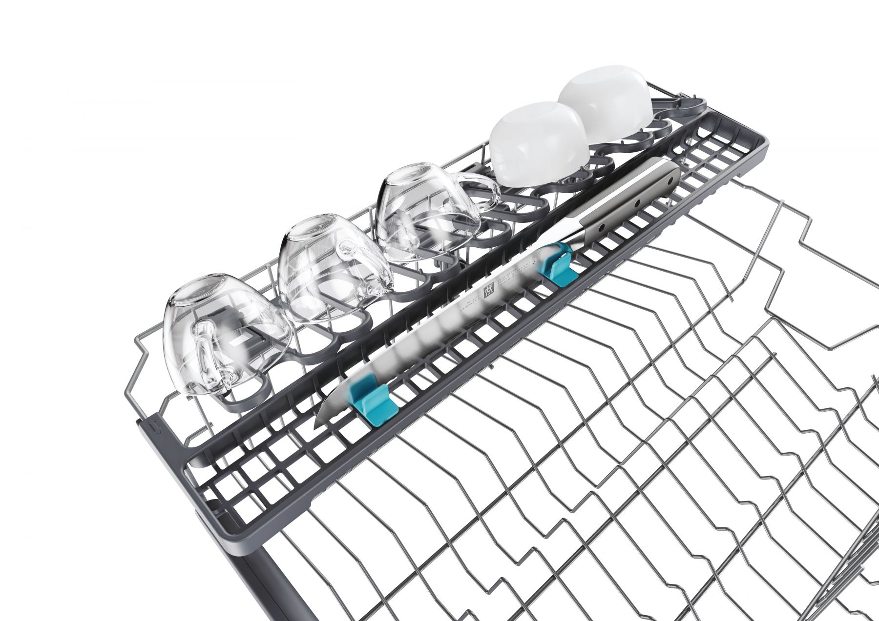 Новий аксесуар, прикріплений до верхнього кошика, призначений для ідеального утримання ножа для хліба, ополоників та інших довгих предметів. Розширений простір для ножів відмінно вирішує проблему миття довгого кухонного приладдя.