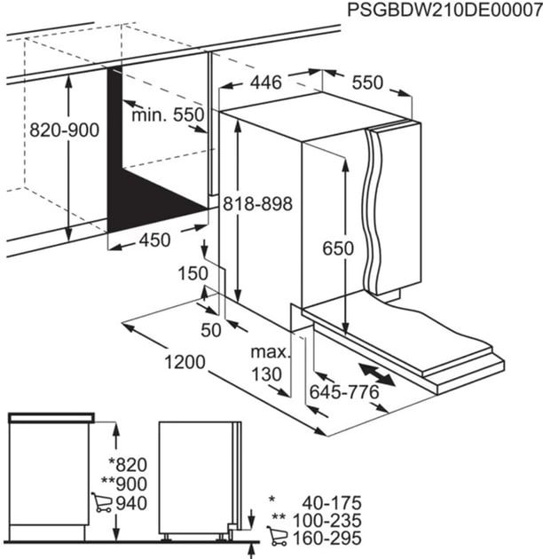 Габарити вбудовування (ШхВхГ):45 х 82-90 х 55 см