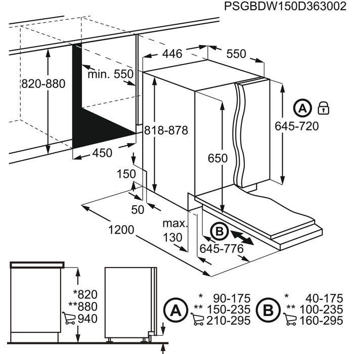 Габарити вбудовування (ШхВхГ):45 х 82-90 х 55 см