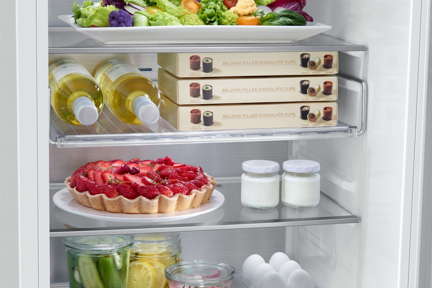 Підтримуйте оптимальну температуру в холодильнику, щоб їжа залишалася свіжою, навіть якщо ви часто відкриваєте дверцята. Металева охолоджувальна пластина підсилює циркуляцію холодного повітря та допомагає компенсувати втрати тепла в разі повторного зачинення дверцят. Також вона додає вишуканого вигляду.