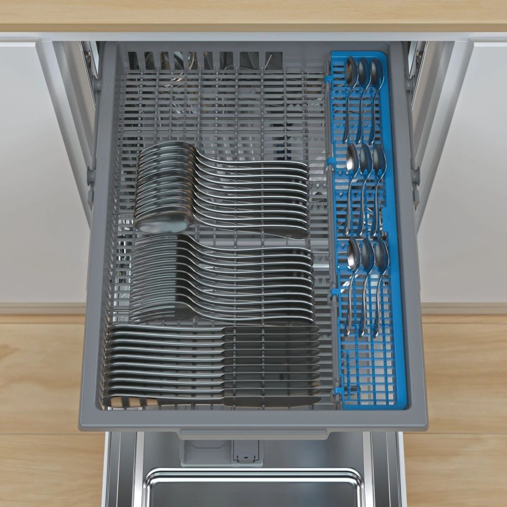 Максимально використовуйте простір вашої посудомийної машини з третім кошиком - ідеально підходить для довгого посуду, а також для посуду меншого розміру, такий як чашки або блюдця.