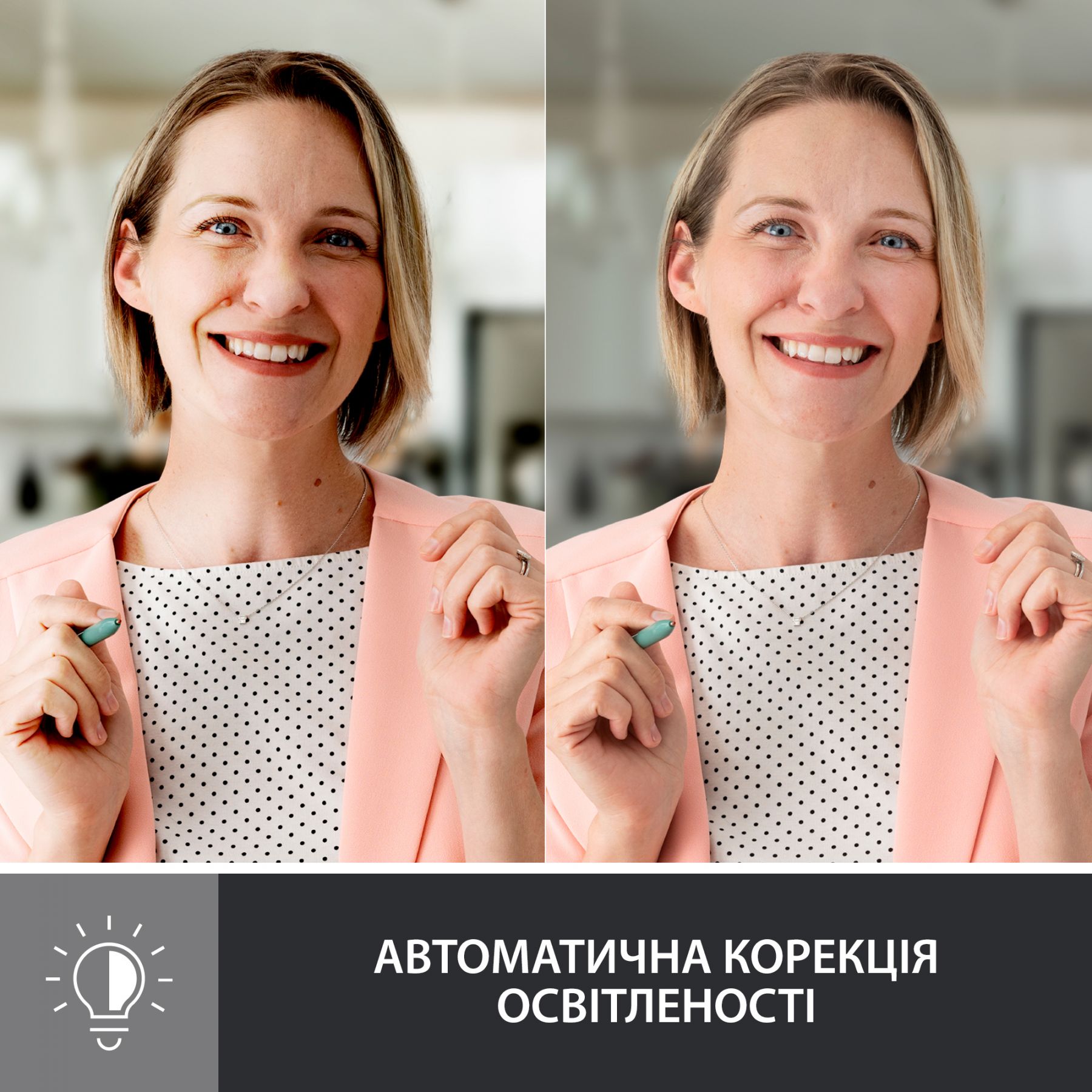 Показуйте себе у вигідному світлі на будь-якій відеоконференції. Завдяки веб-камері Brio 500 ви завжди виглядатимете і звучатимете максимально природно на нарадах, що дозволить вам щиро насолоджуватися спілкуванням з іншими людьми.