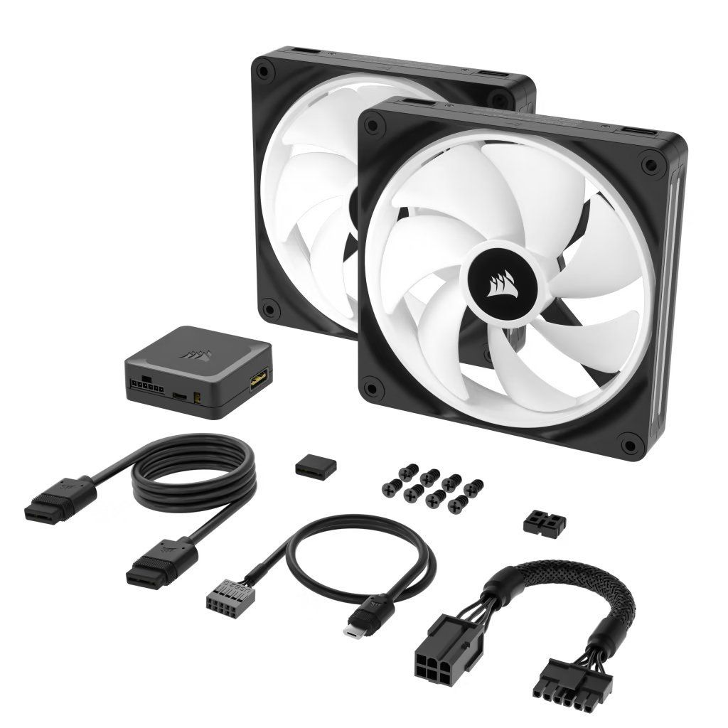 Стартовий набір вентиляторів CORSAIR iCUE LINK QX140 RGB 140 мм із ШІМ містить два вентилятори з чотирма окремими світловими петлями кожен, а також системний концентратор iCUE LINK для підключення одним кабелем.