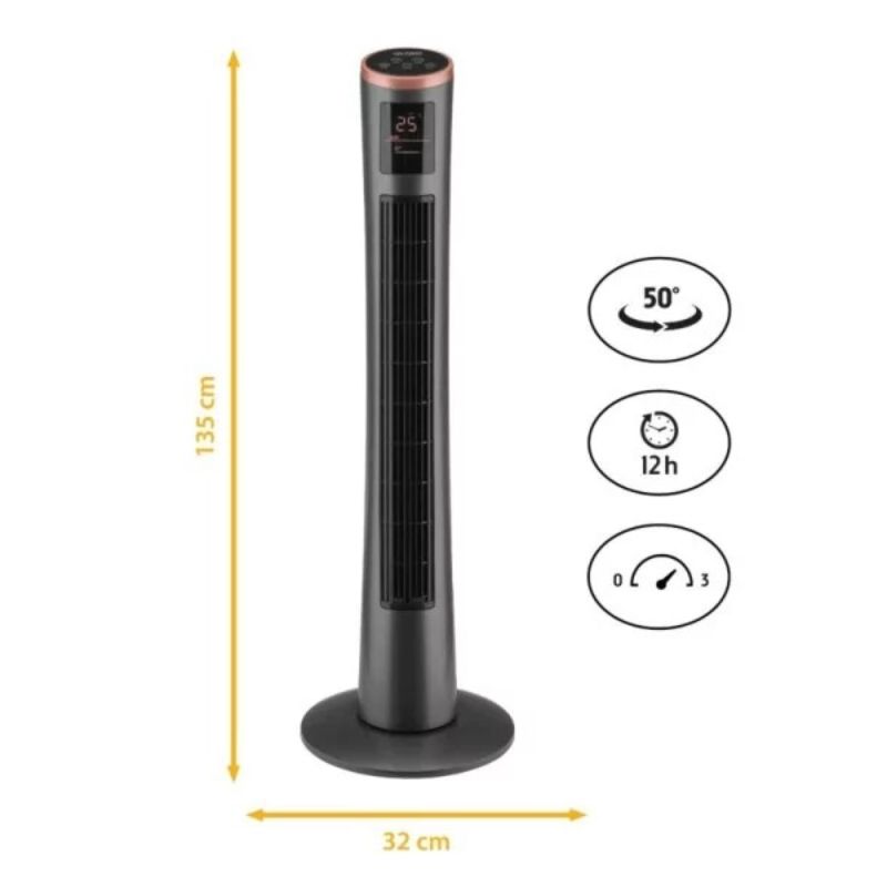 Підлоговий вентилятор потужністю 45 Вт та висотою 135 см. Він обертається на 50 градусів та має 3 швидкості.