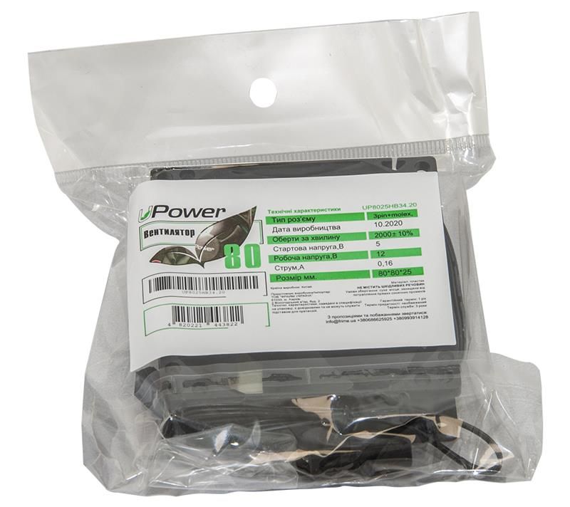 Кулер UPower - високоякісний корпусний 80-міліметровий вентилятор. В основі цього вентилятора гідродинамічний підшипник, який гарантує тиху роботу протягом тривалого часу.