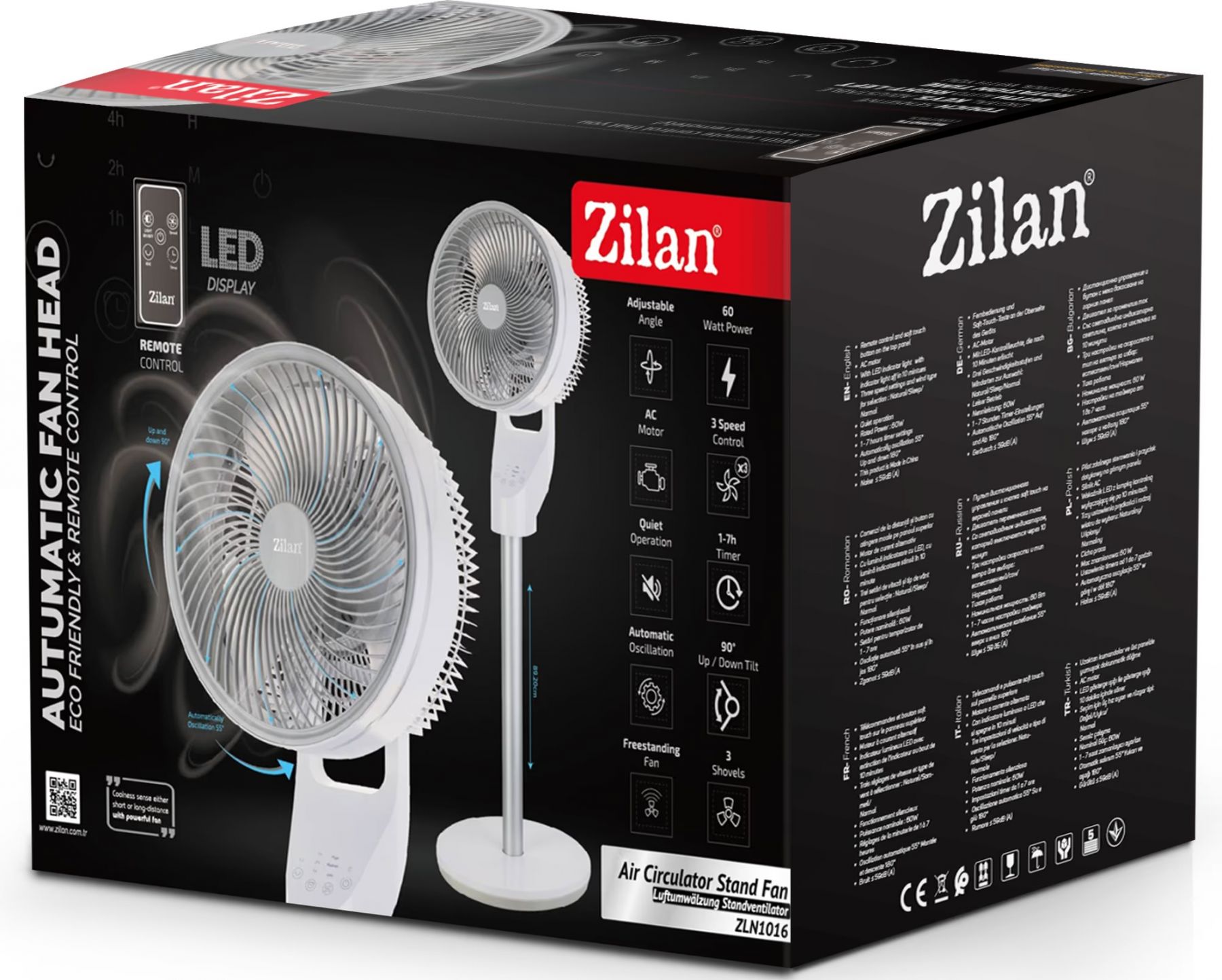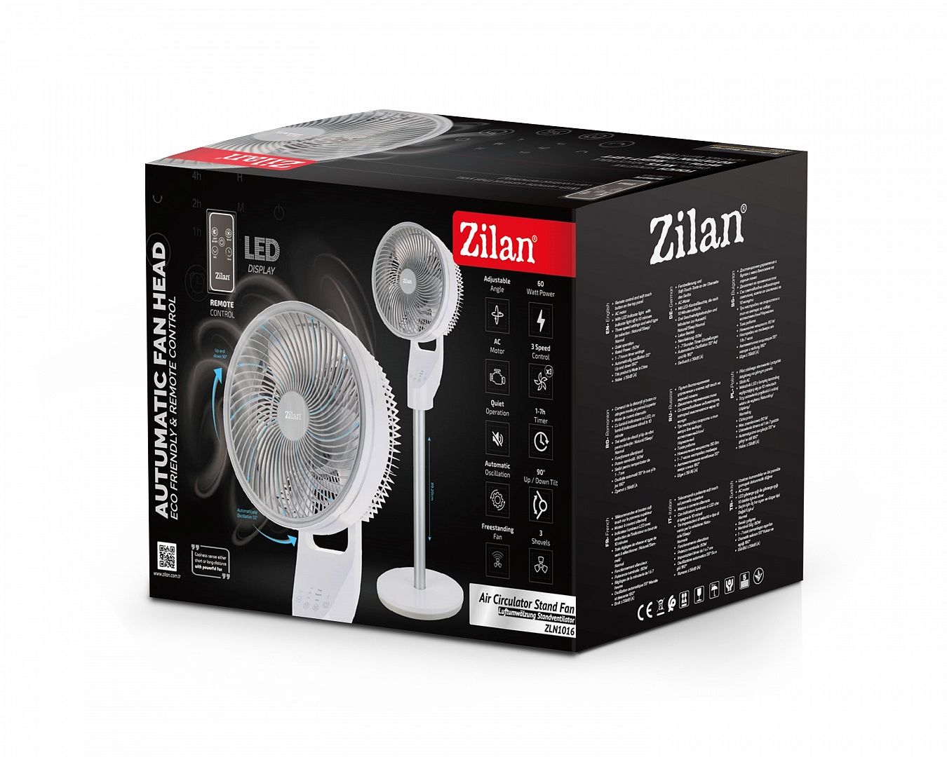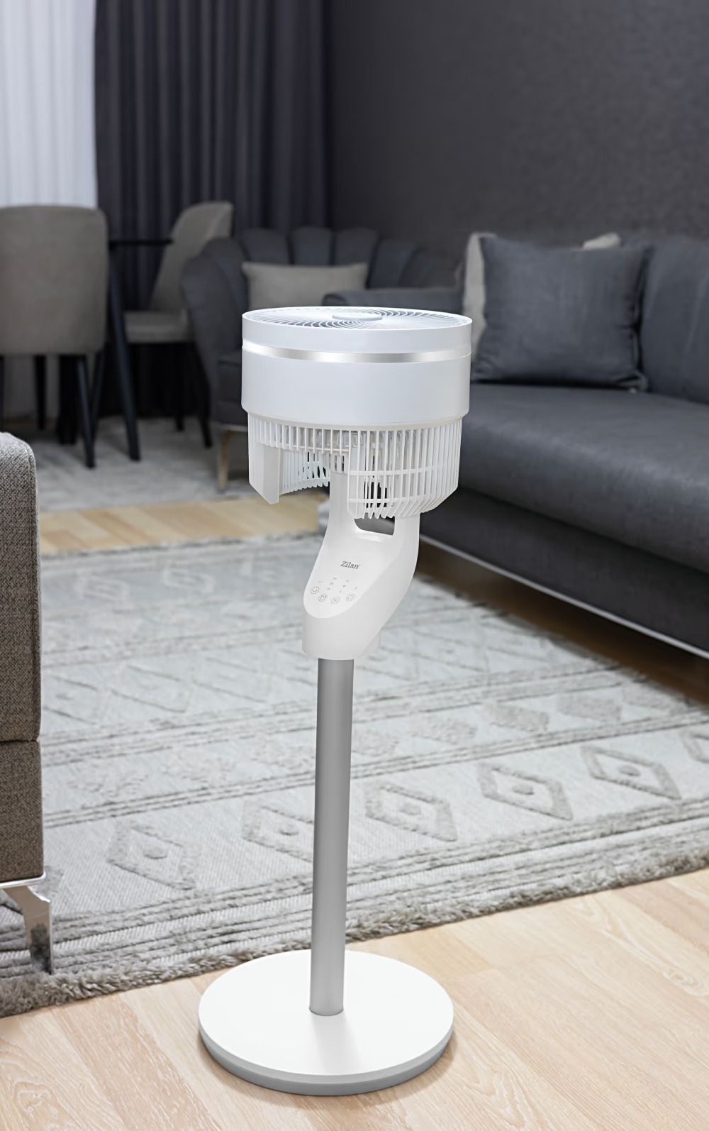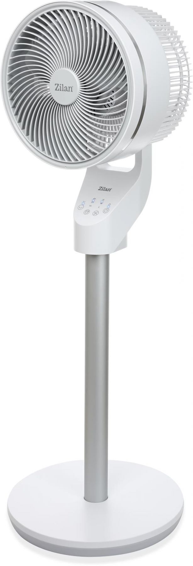 Потужний та функціональний підлоговий вентилятор Zilan ZLN1016 з обертанням у двох площинах, таймером, LED індикацією та дистанційним керуванням. Ідеально впишеться в будь-який інтер’єр та створить комфортну атмосферу в офісі чи будинку. Три режими роботи дозволяють вибрати оптимальну інтенсивність обдування, а поворотний механізм забезпечить рівномірний розподіл потоку повітря по всій території приміщення.