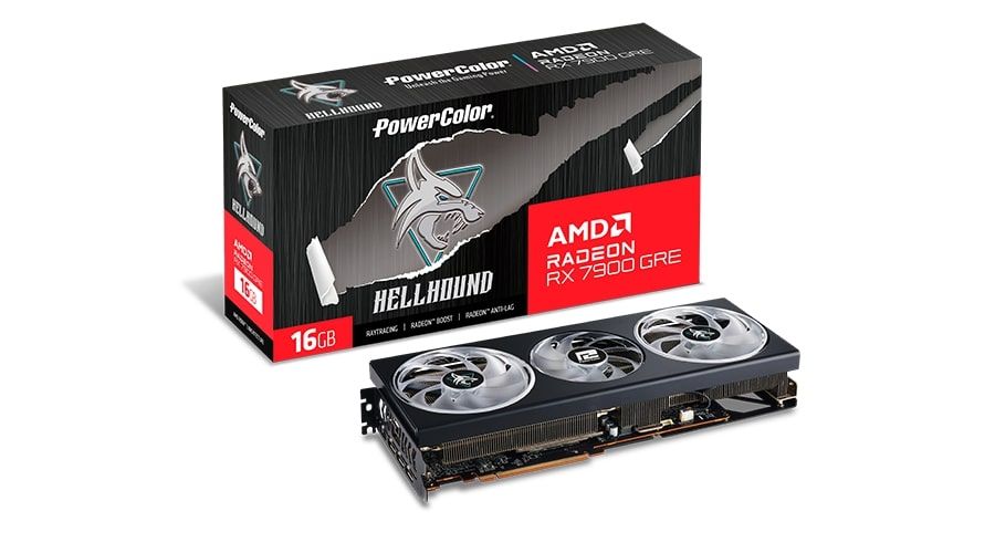 PowerColor Hellhound RX 7900 GRE використовується вентилятор з потрійним кільцем (100 x 90 x 100 мм), набір з 5 x 6? теплових трубок, що проходять через радіатор, і мідна пластина, що безпосередньо стосується графічного процесора і закриває відеопам’ять для досягнення більшої ефективності охолодження. Крім того, продукт має 15-фазну (9+2+1+2+1) фазову конструкцію VRM та DrMOS, який постачається із цифровим моніторингом IMON у реальному часі, спрямованим на забезпечення надійної продуктивності під час ігор.