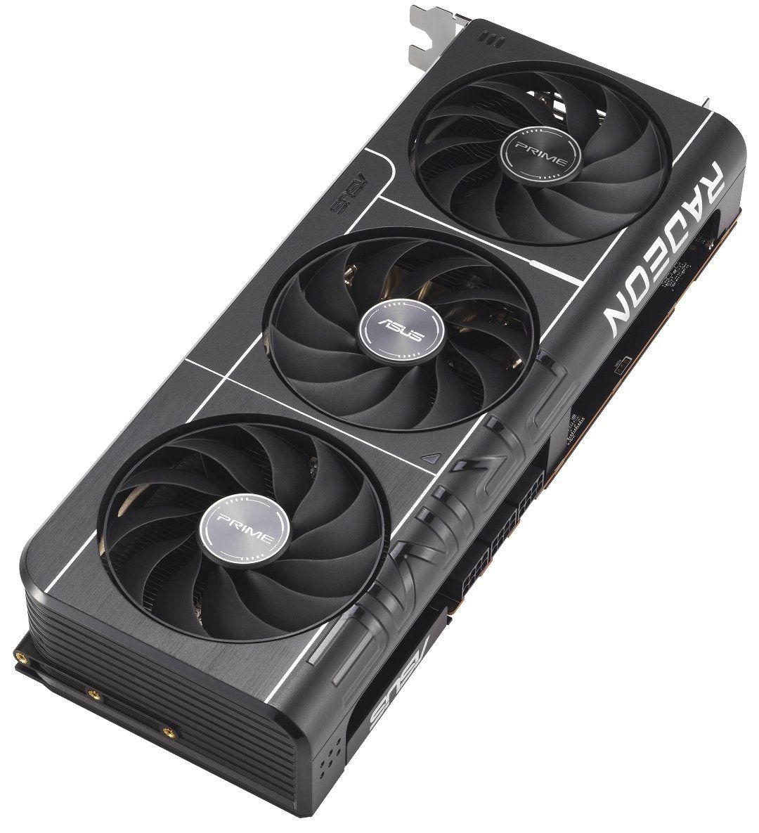 2,5 слоти дизайн. Prime Radeon RX 9070 XT має 2,5-слотовий дизайн з ретельно продуманим розташуванням кожуха, радіатора та теплових трубок, що дозволяє трьом вентиляторам Axial-tech ефективно використовувати вентиляцію бічних панелей шасі та забезпечувати оптимальну теплову продуктивність.