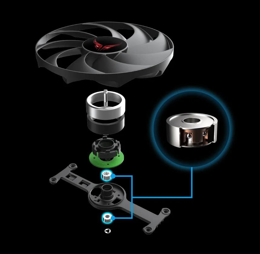 Подвійні шарикопідшипники знижують тертя при обертанні, забезпечуючи чудове розсіювання тепла та збільшуючи очікуваний термін служби вентиляторів у два рази.