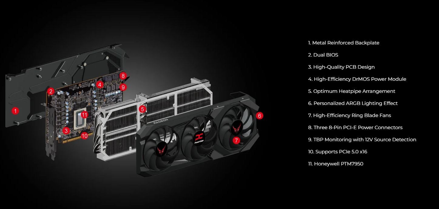 Забезпечуючи стабільне живлення під час будь-якої ігрової сесії, Red Devil має 10+1-фазну схему живлення, доповнену спеціальним 3+2-фазним блоком живлення пам'яті. Модуль оснащений струмопровідними полімерними конденсаторами, що забезпечують тривалий термін служби та високу ефективність перетворення, ефективно знижуючи втрати енергії під час передачі.