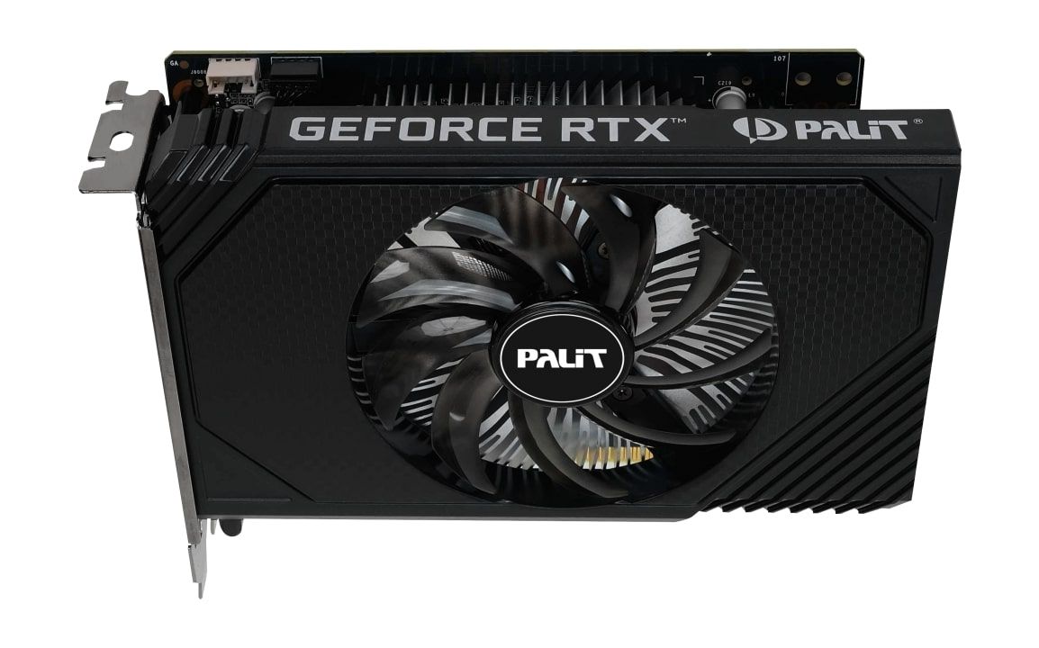 Palit GeForce RTX 3050 STORMX 6GB GDDR6 – це компактна та потужна відеокарта, що підходить для малогабаритних ПК. Вона заснована на архітектурі NVIDIA Ampere та має 2304 ядра CUDA, що працюють на частоті до 1777 МГц у режимі розгону. Відеокарта має 6 ГБ пам'яті GDDR6 з 96-бітною шиною та пропускною здатністю 168 ГБ/с.