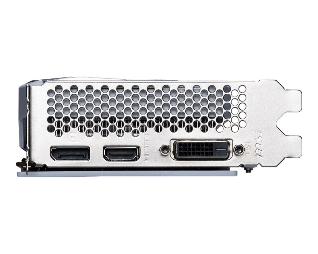 MSI RTX 3050 VENTUS 2X XS WHITE виконана у строгому білому кольорі, який надає вашій системі сучасного та вишуканого вигляду. На задній панелі встановлено міцну металеву пластину з текстурованою шліфованою поверхнею, яка захищає внутрішні компоненти від пошкоджень і збільшує загальну жорсткість конструкції.