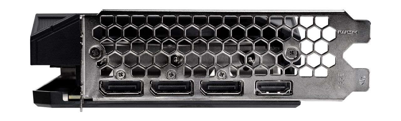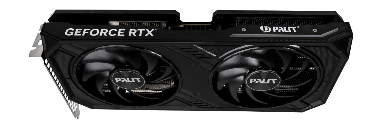 GeForce RTX 4070 Dual GDDR6 покрита гладким чорним покриттям. Завдяки двом великим вентиляторам діаметром 95 мм і широкому отвору на задній панелі відеокарта пропонує конкурентоспроможне охолодження та акустичні характеристики. М’яке RGB-підсвічування на задній панелі також додає відчуття стилю комп’ютерній станції, не відволікаючи увагу.