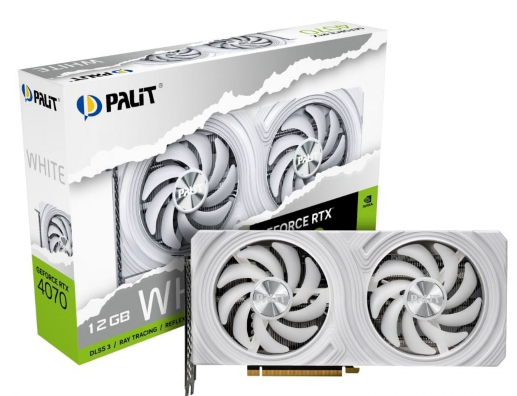 Серія GeForce RTX 4070 White пропонує ідеальне поєднання елегантного зовнішнього вигляду та безкомпромісної потужності. Моделі мають гладку білу кольорову гамму як на шкірі, так і на задній панелі, що дозволяє легко інтегрувати їх у будь-яку світлу збірку ПК.