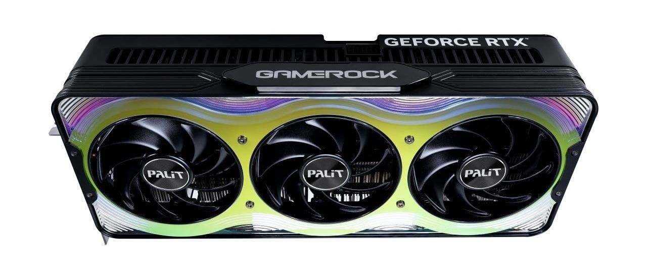 Відеокарта Palit GeForce RTX 5090 GameRock вражає своїм унікальним дизайном з ефектом хамелеону, який змінює кольори залежно від кута огляду. Цей оптичний камуфляж створює динамічний візуальний ефект, що зачаровує, змішуючи яскраві кольори і надаючи вашій системі стильний і сучасний вигляд.