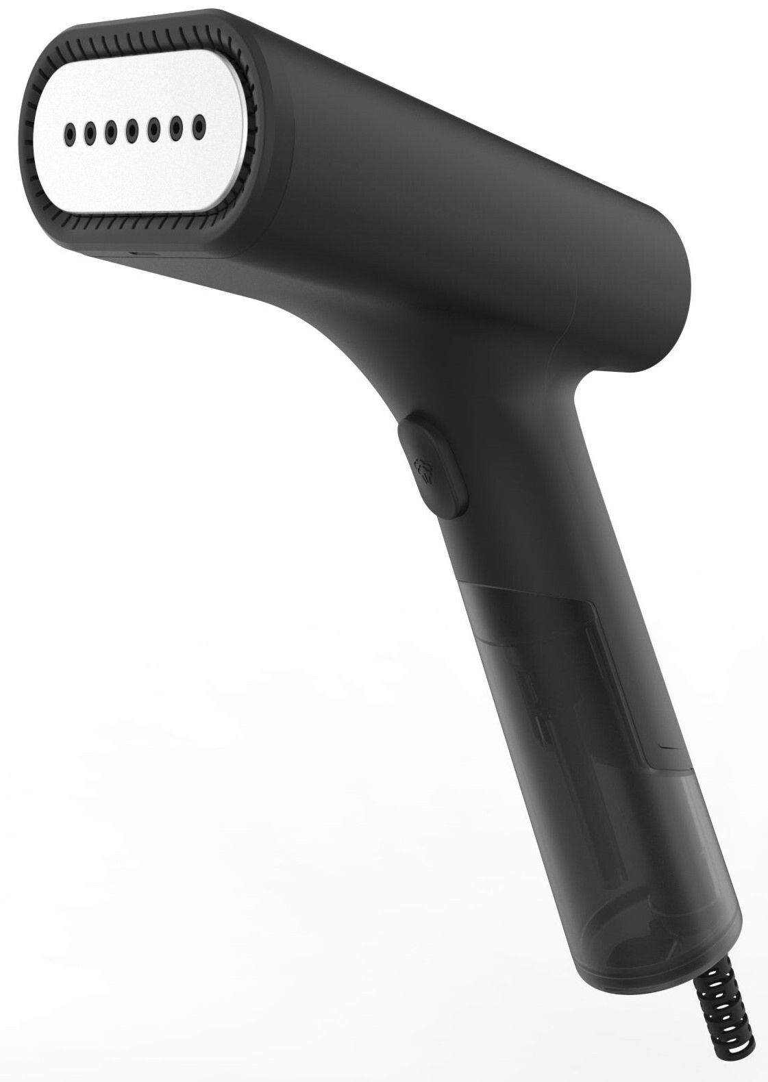 Ця чорна парова праска складається з бойлера, який можна залишити на підлозі, і пістолета, який розсіює пару. Дві частини з'єднані товстим шнуром. Його дизайн зробить його непомітним, де б ви його не зберігали, у коморі чи в гардеробній, щоб він завжди був під рукою.