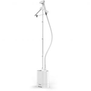 Прилад не займає багато місця, але забезпечує високий ступінь зручності при роботі. Стильний пластиковий корпус приховує ємність для води всередині. Відпарювач можна залишати на увазі, адже він не може зіпсувати вигляд кімнати. Зате у вас завжди буде можливість швидко прогладити чи освіжити потрібну річ перед виходом із дому. А ергономічна стійка з вішалкою дозволяє розмістити потрібний одяг прямо на відпарювачі.