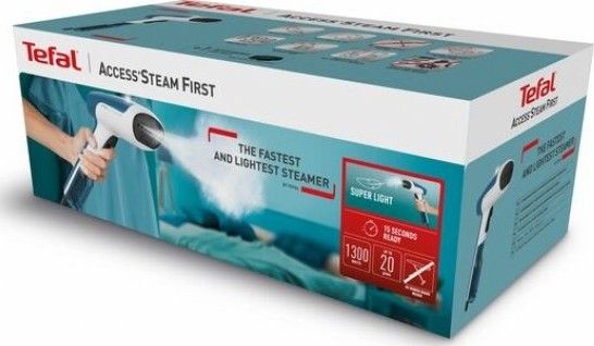 Ручний отпариватель Tefal Access Steam First в компактному і ультралегком корпусі допоможе легко доглядати за тканинами будинку і в поїздці. Завдяки потужності 1300 Вт отпариватель розігрівається всього за 15 секунд і подає пару із швидкістю 20 г/мін - ваш одяг виглядатиме бездоганно за лічені секунди. Сучасний ергономічний дизайн корпусу отпаривателя - ця стійка основа, комфортне руків"я, знімний резервуар для води і кнопка подання пара, яка розташовується прямо під вказівним пальцем вашої руки. Ручний отпариватель Tefal Access Steam First безпечний для усіх типів тканини і замінює дорожню праску у будь-якій поїздці.