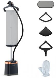 Прості елементи керування ввімкненням/вимкненням, резервуар для води об’ємом 1,3 л для тривалого відпарювання, компактна конструкція з колесами, які можна складати зроблено для зручного користування та зберігання.