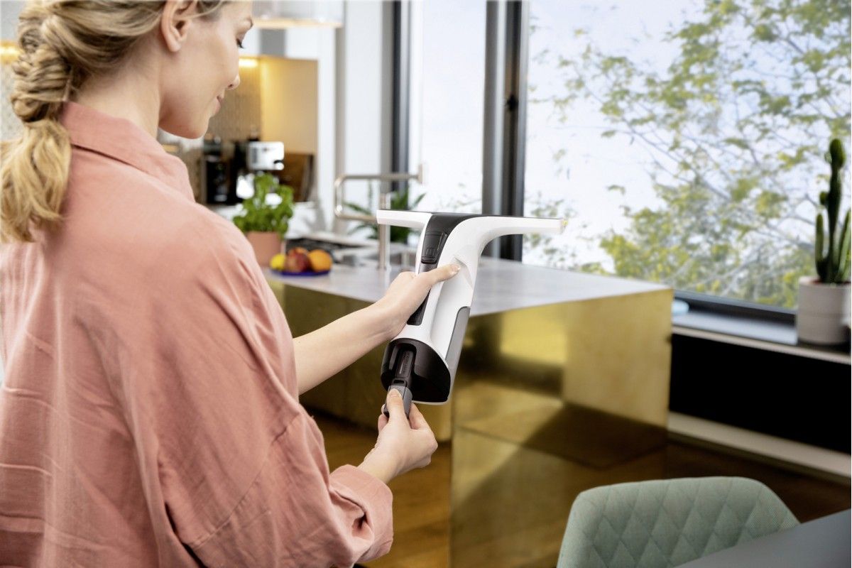 Продумана комбінація пульверизатора для нанесення засобу для чищення, мікроволоконної насадки для його розподілу на склі та самого склоочисника, оснащеного електричним всмоктувальним пристроєм, забезпечує сяючу чистоту скла - на ньому не залишається ніяких смуг або розводів. За допомогою цього апарату можна легко очищати і будь-які інші гладкі поверхні. При цьому ергономічна конструкція акумуляторного склоочисника WV 4-4 Plus забезпечує максимальну гігієнічність: спорожнення і очищення бачка для брудної води проводяться без безпосереднього контакту з нею.