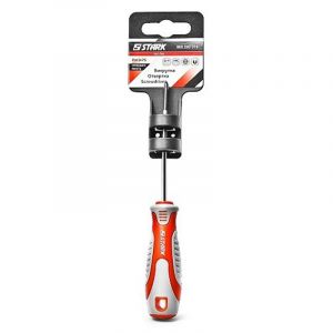 Робоча частина викрутки Stark 502303100 PZ3 виготовлена з кованої хром-ванадієвої сталі, що гарантує міцність і тривалий термін служби інструменту. Висока твердість металу забезпечує стійкість до деформації і «злизування». Намагнічене жало дає можливість добре з’єднуватися з поверхнею кріплення.